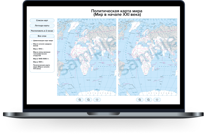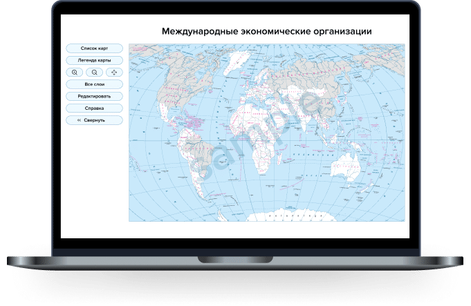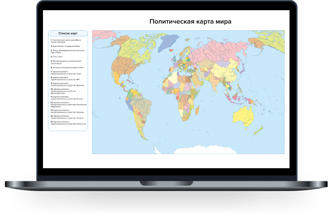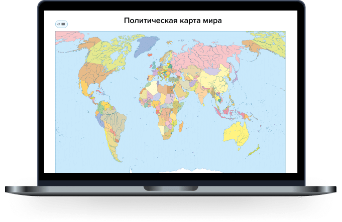A multimedia cartographic manual, the use of which in the educational process is possible as an alternative to cartographic textbooks in printed form. This application visualizes the position of countries and other territories on the surface of the Earth, contributes to the formation of an image studied territories.