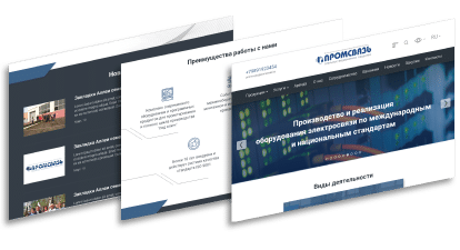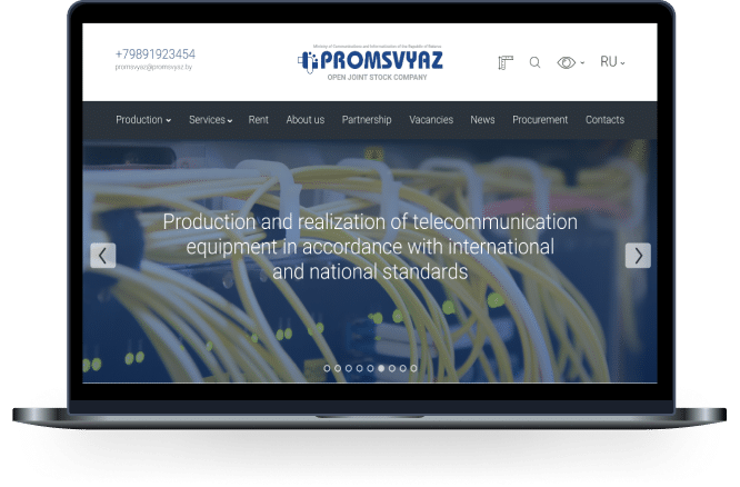 Website for «Promsvyaz» company, which main task is production and realization equipment in accordance with international and national standards.